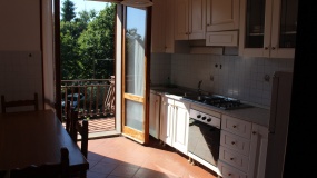 Per chi ama la tranquillità e i profumi del bosco pur essendo vicino al paese, appartamento vicino al paese, appartamento in palazzina di 3, ingresso indipendente, ampia sala, cucina, bagno, due camere e due grandi terrazze che si affacciano sul bosco. Circonda la proprietà un giardino alberato.